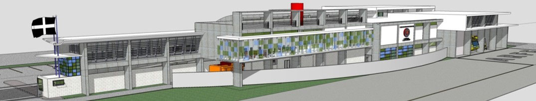 The two story building is designed for self-sufficiency. All disciplines highlight the sustainability design that provides better environmental quality and lower maintenance costs for the owner. The exposed concrete provides an opportunity to reduce maintenance costs, avoiding the need for exterior paint. The curved roofs at different levels allow the uptake of rain water, which is stored in an underground cistern and then filtered to use. The north and south window walls provide natural light to offices and training rooms, reducing the use of lamps during the day. The tempered glass windows are highly efficient reducing electrical costs with a lower demand for air conditioning. Also the building uses solar panels that feed on sunlight to heat water for the kitchen and bathrooms.