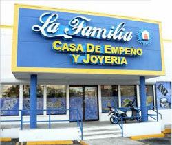 La Familia is a pawn service chain store from Florida. The concept promoted by La Familia is new to the island. It is not the traditional "24 hour trade everything" shop which had been the norm in Puerto Rico. These new stores will only open during the daytime. They look more like a department store than a regular pawn shop. However, they still trade jewelry and other goods. Furthermore, these chain stores will also barter in new merchandise. Each customer entering the store is received by an attendant who will cater to specific needs.